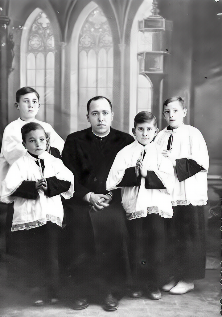 El cura Vicente Llopis Bertomeu con sus acólitos: