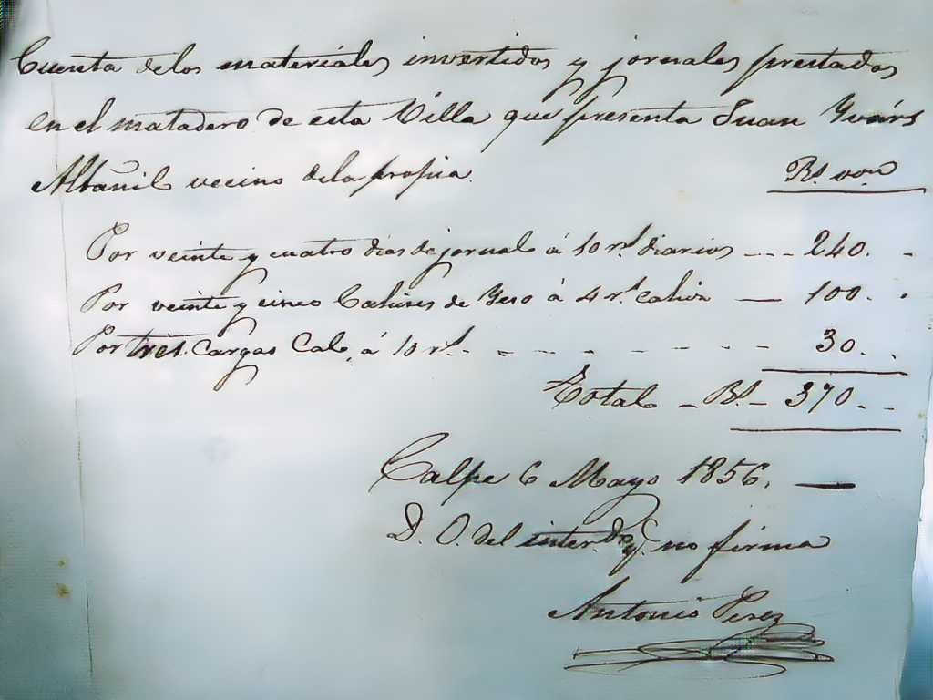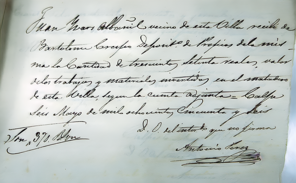 Al albañil Juan Yvars por los trabajos y materiales invertidos en el matadero público de esta villa. 370 R.v.