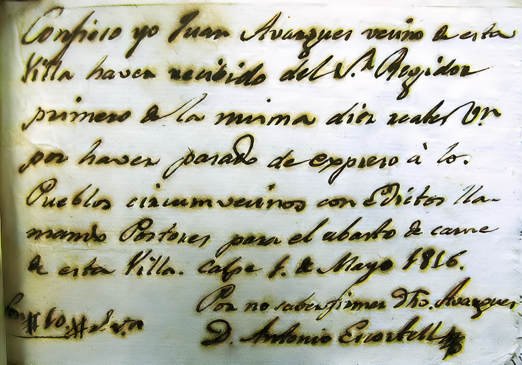 El documento más antiguo al que hemos tenido acceso es un pago a Juan Avargues vecino de Calp en el que recibe 10 reales vellón por “ haver pasado de exprofeso á los pueblos circumvecinos con Edictos llamando pastores para el abasto de carne a esta Villa. Calpe a 8 de Mayo de 1816”. A la vista de esta noticia podemos deducir que los ganados locales no producían la suficiente carne para las necesidades de nuestra población. Sin embargo, el cura de nuestra parroquia en 1777 informaba que el término de Calp “esta plantado de almendros, algarrobos y tierras de labor, con buen pasto para carneros, que es la carne más sabrosa de este reino”