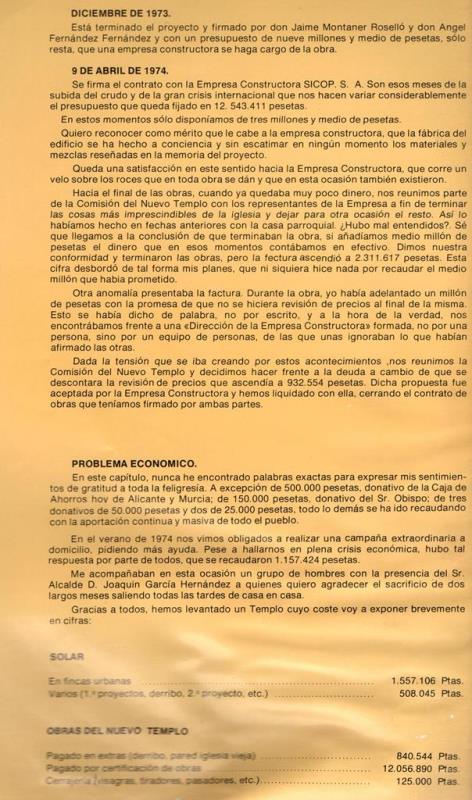 Finalmente, el coste de la construcción fue de 17.000.000 de pesetas. de los que el obispado aportó
