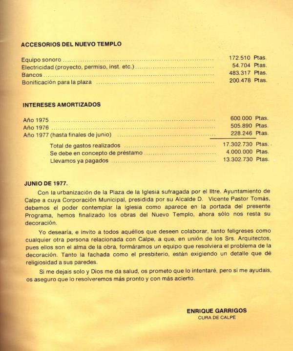 Garrigós Miquel regenta nuestra parroquia desde el año 1960 hasta 1978.