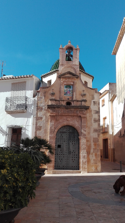 Ocupa una plaza trapezoidal en la confluencia de la calle Cigró con la avenida de la Fustera; desde ésta tiene dos accesos, uno para vehículos, directamente a la plaza y otro peatonal, por el que hay que salvar un desnivel entre la avenida y la plaza subiendo una escalera de media docena de peldaños. Inmediatamente a la izquierda queda una cruz de hierro calado con un festoneado interior, también metálico, colocada sobre una peana rectangular y una basa poligonal. Al frente, a poca distancia, se muestra el cuerpo de la ermita, más anclado que levantado del suelo, sin ningún elemento constructivo que nos haga pensar que estamos ante un lugar de culto. No tiene espadaña ni campana.