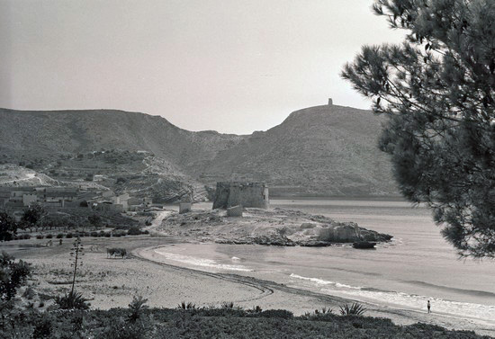 Recorrimos luego, como cosa de un kilómetro, hasta el santuario castillo de Moraira, derruido en parte. Defendió de moros el vallecito que se dilata hasta los cerros de Benitachell. Recorremos las dos calles, paralelas al mar, que constituyen el caserío de Moraira; en la de los Almacenes, arriba, paraje del Fortí, me tropiezo con algunos grandes sillares románicos, con piso de hormigón. También veo otros próximos á la iglesia. Contemplamos la tranquila y arenosa playa, y enderazamos nuestros pasos por el camino de Benitachell. Cruzamos este pueblo, pintorescamente colgado de un collado, a á las ocho de la noche nos hallamos de regreso en Jávea.